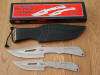 | Below are listings of all Gil Hibben production knives that I know of. It should be noted that many knives were produced in various editions and versions. For example: the UC-441 Silver Shadow was also available as UC-441B Silver Shadow Black and UC-441 Dark Shadow. Many of the Fantasy knives were produced in limited "Signature" or "First Production Run (FPR)" and "Gold" editions in addition to the basic regular edition. Variations of the Fantasy knives are listed in the table below. Limited edition knives are usually produced in quantities of 2000-7500. However, occasionally a short run of just a few hundred knives will be specially produced. Value sometimes has a pretty wide range depending on rarity and/or condition. Of course, lower serial numbers are always more valuable. I no longer keep up with what the knives are selling for on the secondary market so I cannot help you with current values. My best advice is to just watch Ebay and see what they are selling for. It should also be noted that over the years United Cutlery has released or reissued several versions of the same knife. This was especially true from 1990-1995 when they had their own in-house etching department. I have identified at least 9 different versions of the Highlander Bowie and at least 4 different runs of the Warbirds. Some were also produced with special etchings such as "Edge" and "Hofritz". See also: Hibben Throwers for Gil's line of Throwing Knives, Hibben Fantasy for a list of the Fantasy Series, and Hibben Customs for a sampling of his custom hand made knives. Update 2007: United Cutlery went into bankruptcy and closed down in November 2006. In early 2007 Clint Kadel, owner of Bud-K, purchased United Cutlery's assets, including designs and trademarks and is operating United Cutlery from new headquarters in Georgia, USA as a completely separate company from Bud-K. They have renewed their licenses with Gil Hibben to continue producing his line of production knives. Gil Hibben Production KnivesUpdated 10/31/09 Click thumbnail image for larger pictures and more information. Prices are for reference only - These knives are not for sale here.